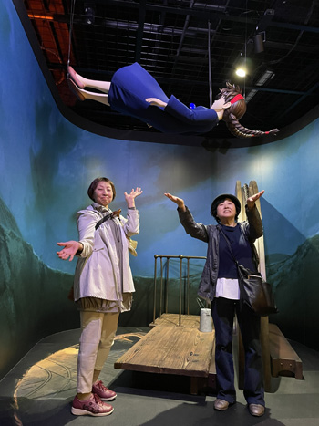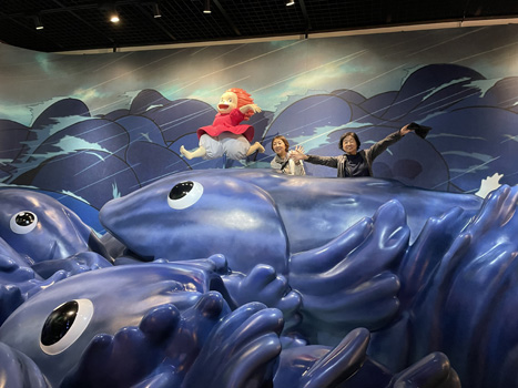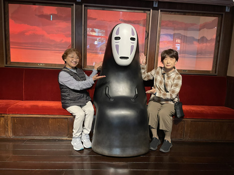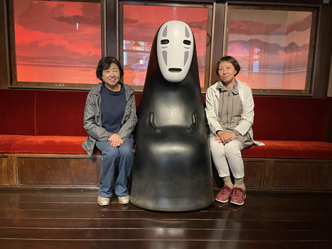 大倉庫の中では基本自由行動。 「かおなし」と一緒に写真を撮るには、長ーい行列に並ぶ必要があります。 撮りたい人は、40分以上待ちました(^▽^;) それでも、せっかくきたのだからと、おしゃべりしながら根気よく待ちました。 他の場面は、順番を待ては割とすぐに写真を撮ることができました。 その後、いろいろな写真を取り合いました。 「オリヲン座」でショートムービーを見ました。 |