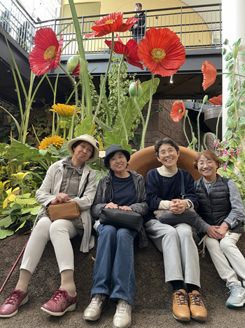 名駅構内の金時計のところで、エルが合流。彼女は膝を手術した後で、杖をついての登場。大変な思いをしても、参加してくれてすごいよね。 地下鉄で藤が丘まで行き、そこから、リニモに乗って愛地球博記念公園まで移動。 土地勘のまったくない私などは、ただひたすら、先頭からあまり遅れないように、必死でついていく、という感じでした。 私は、初めてのジブリパークで、うきうきわくわく。 |