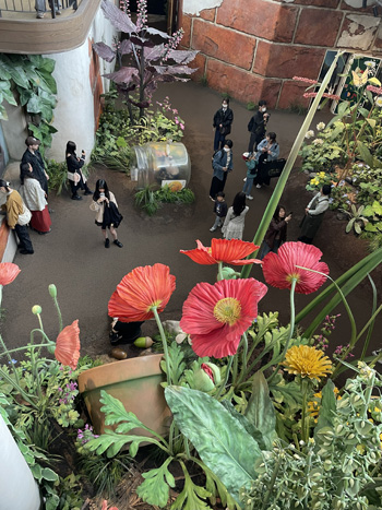 ジブリの大倉庫を出て、魔女の谷へ。 建物内部の撮影は禁止です。 中は、とてもかわいいキキの部屋や、魔法の薬に使う植物やら、なんやらの置いてある部屋などがありました。 小物は自由にさわって見ることができます。 「もって行ってしまう人いるのでは?」と心配になります。 アジア系の若い男の子がキキの机のところの細かい品物を乱暴に手に取って、ポイっと投げ捨てるように置いたのを見て よほど注意してやろうかという、おせっかい魂が出そうになったけど、いや、いかんいかんと、ぐっと我慢しました。 |