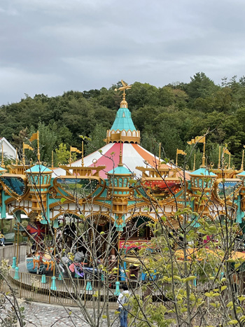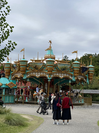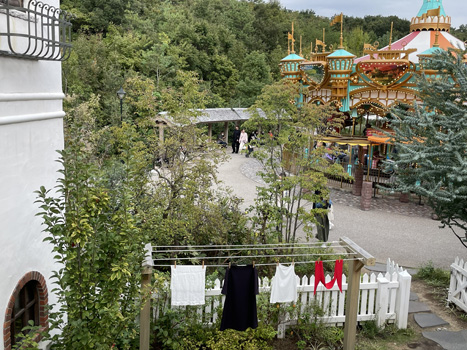 | グーチョキパン屋 の2階からみたメリーゴーランド | キキの洗濯もが干してあります。細かい演出ですね | |