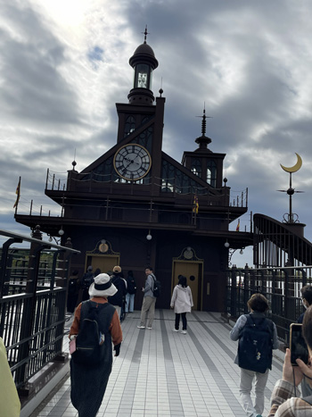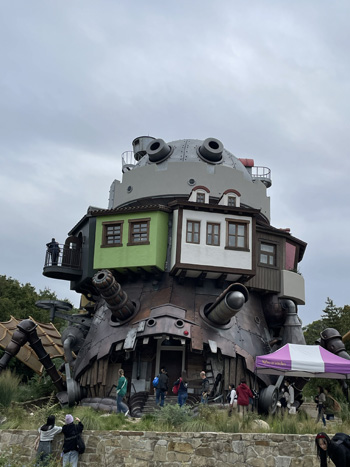| ハウルの動く城 ジブリパークのスタッフは、物語の世界を大切に守るように訓練されていいますね時々、建物から蒸気がでるのですが、「蒸気が出る時間は決まっていますか?」の質問に「それは、カルシファーの気分次第です。」と答えてたよ。 |