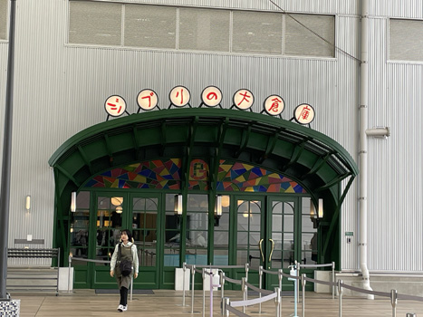 | ジブリの大倉庫の入口。並んで入場を待ちます。 | ジブリのなりきり名場面展 | |